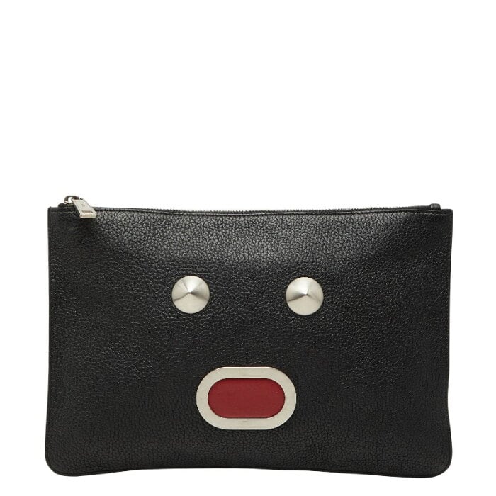 フェンディ フェイス クラッチバッグ セカンドバッグ 7N0078 ブラック レザー メンズ FENDI 【中古】