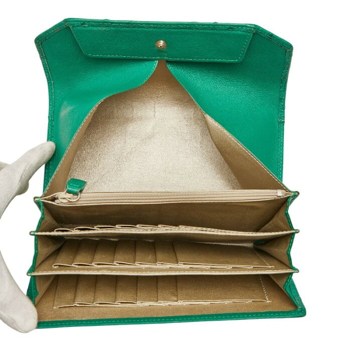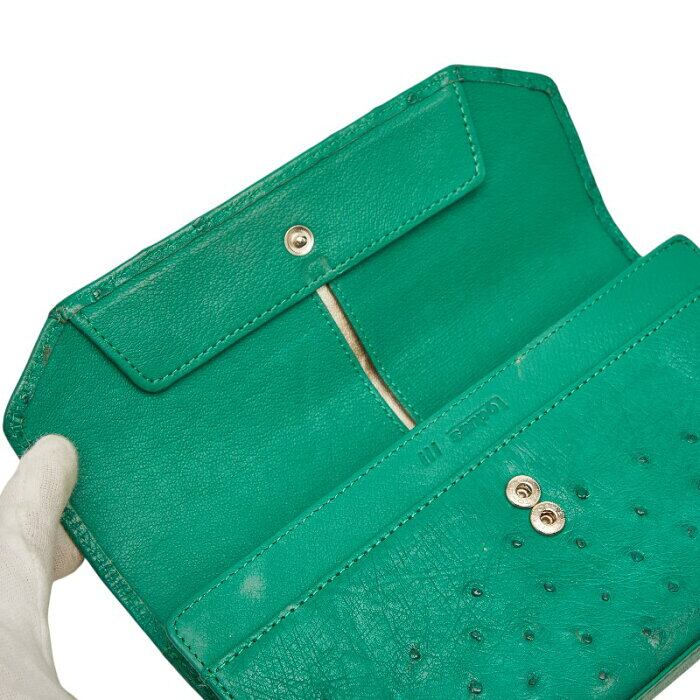 三宝/サンポウ sanpo オーストリッチ 長財布 グリーン レザー レディース sanpo 【中古】