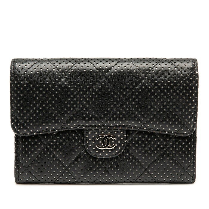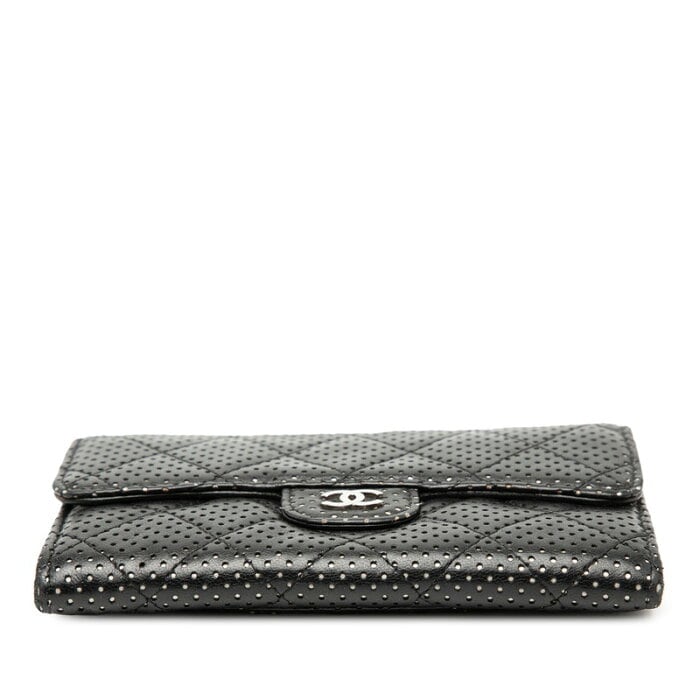 シャネル ココマーク マトラッセ パンチング 二つ折り財布 11278975 ブラック シルバー金具 レザー レディース CHANEL 【中古】
