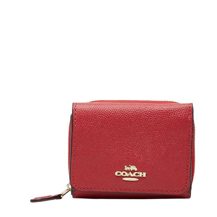 コーチ ロゴ 三つ折り財布 コンパクトウォレット F37968 レッド レザー レディース COACH 【中古】