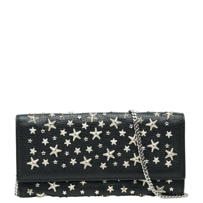 ジミーチュウ スタースタッズ チェーンウォレット ブラック レザー レディース JIMMY CHOO 【中古】