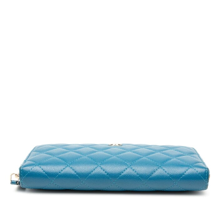 シャネル ココマーク マトラッセ ラウンドファスナー 長財布 ブルー キャビアスキン レディース CHANEL 【中古】