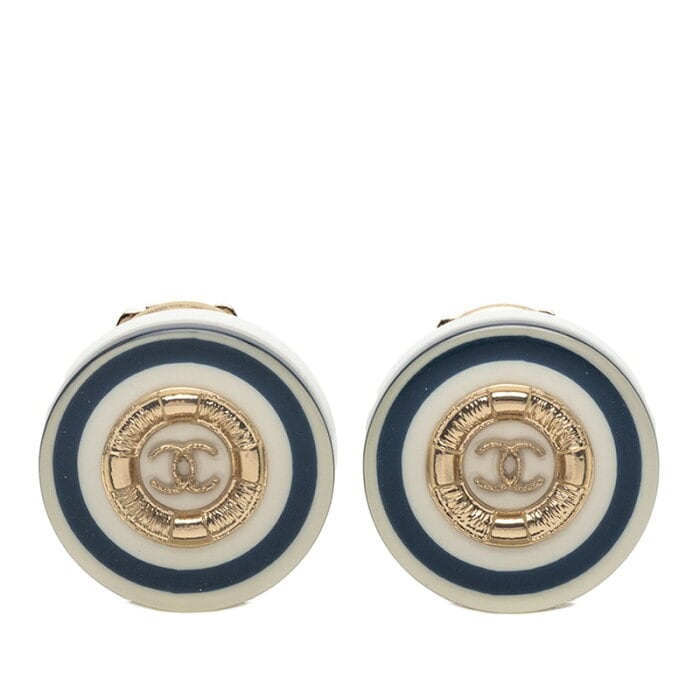シャネル ココマーク クルーズライン イヤリング ホワイト ネイビー ゴールド プラスチック メッキ レディース CHANEL 【中古】