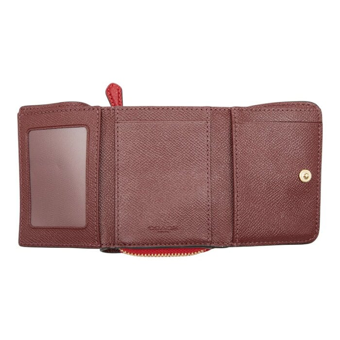 コーチ ロゴ 三つ折り財布 コンパクトウォレット F37968 レッド レザー レディース COACH 【中古】