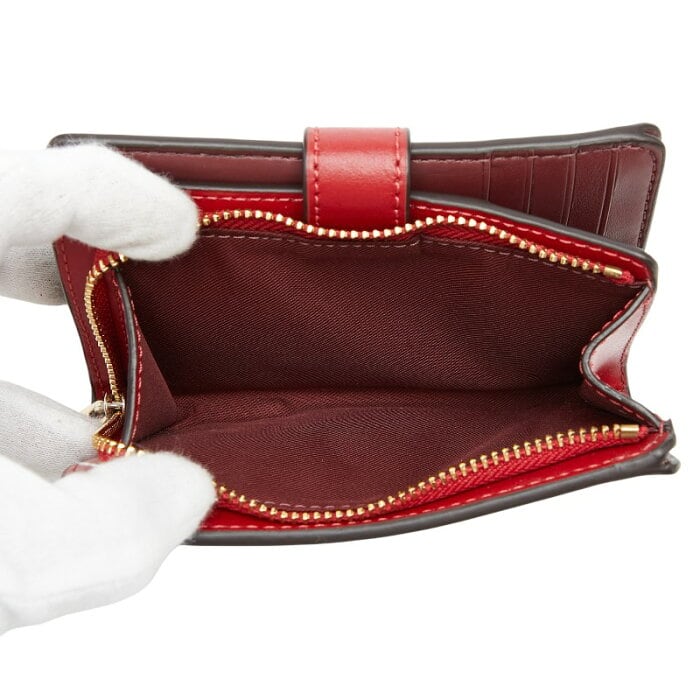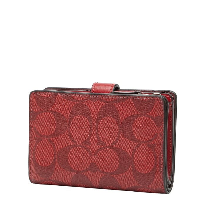 コーチ シグネチャー 二つ折り財布 レッド PVC レザー レディース COACH 【中古】