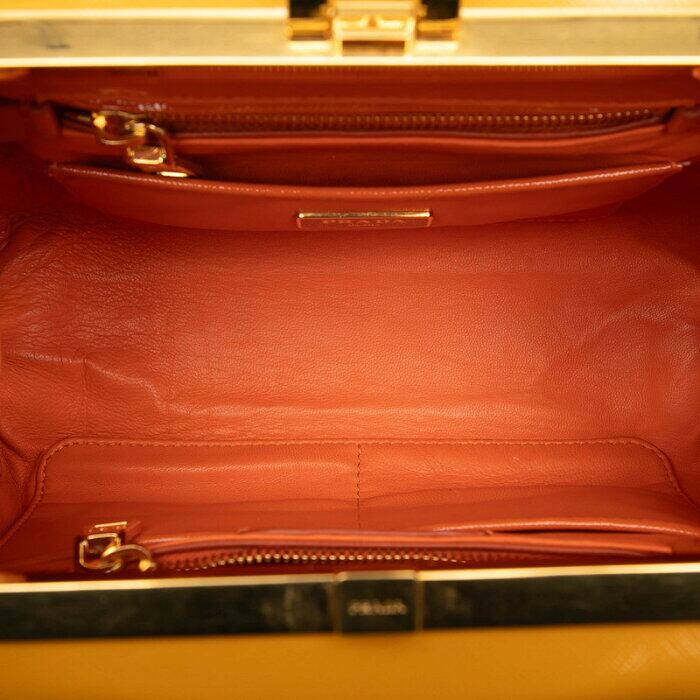 プラダ 三角ロゴプレート ハンドバッグ オレンジ パパイヤロッソ パテントレザー レディース PRADA 【中古】
