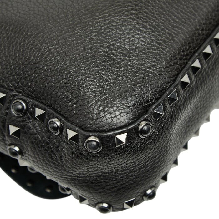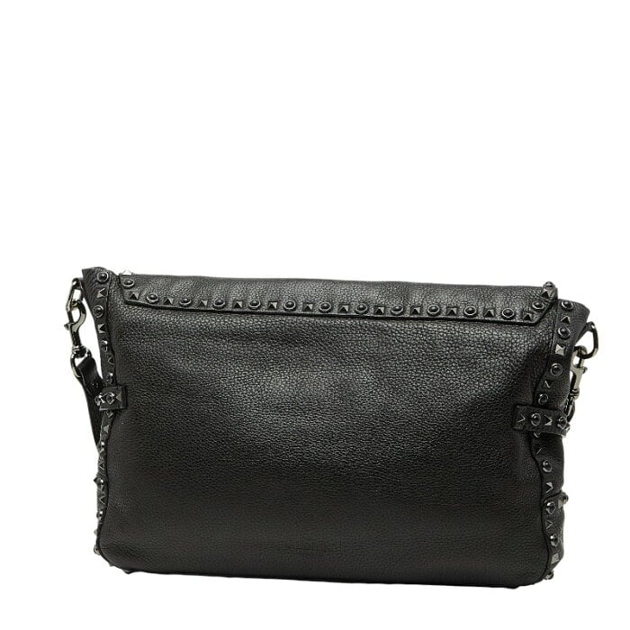 ヴァレンティノ ロックスタッズ 斜め掛け ショルダーバッグ ブラック パープル レザー メンズ VALENTINO 【中古】