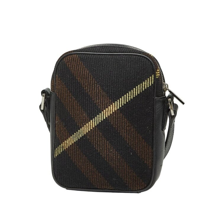 バーバリー チェック 斜め掛け ショルダーバッグ ブラック ブラウン レザー キャンバス レディース BURBERRY 【中古】