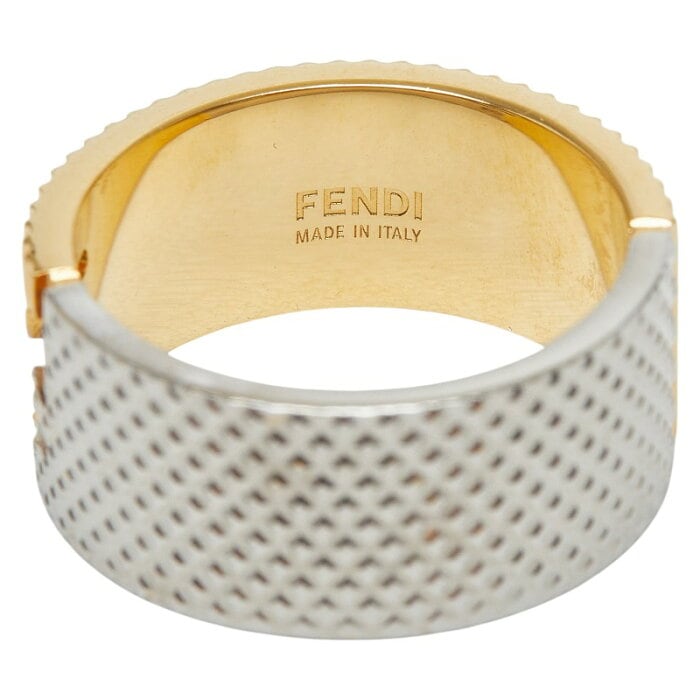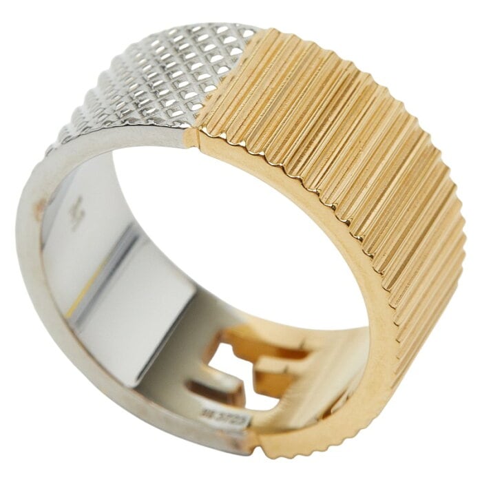 フェンディ FFリング 指輪 #M 7AJ774 ゴールド シルバー メッキ メタル メンズ FENDI 【中古】