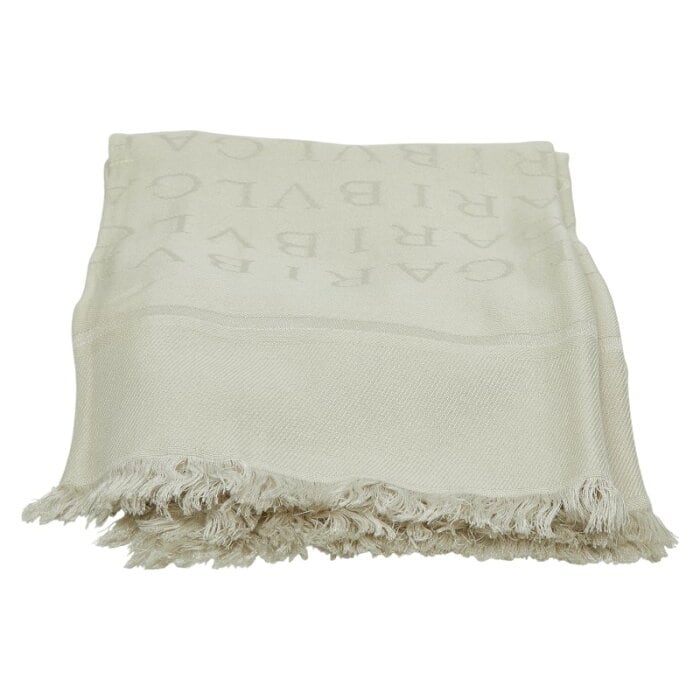 ブルガリ ロゴマニア ストール グレージュ ベージュ系 シルク ウール レディース BVLGARI 【中古】