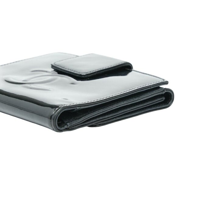 シャネル ココマーク カメリア 二つ折り財布 ブラック マルチカラー パテントレザー レディース CHANEL 【中古】