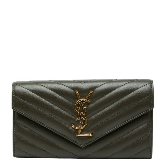 サンローラン カサンドラ Vステッチ 長財布 372264 カーキ レザー レディース SAINT LAURENT 【中古】