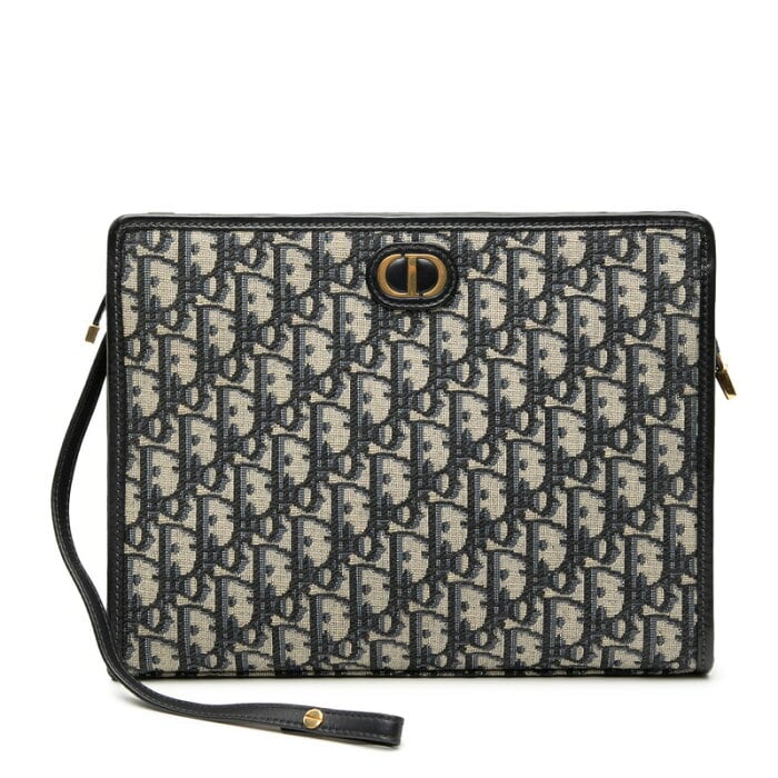 ディオール オブリーク 30 モンテーニュ クラッチバッグ ネイビー キャンバス レザー レディース Dior 【中古】