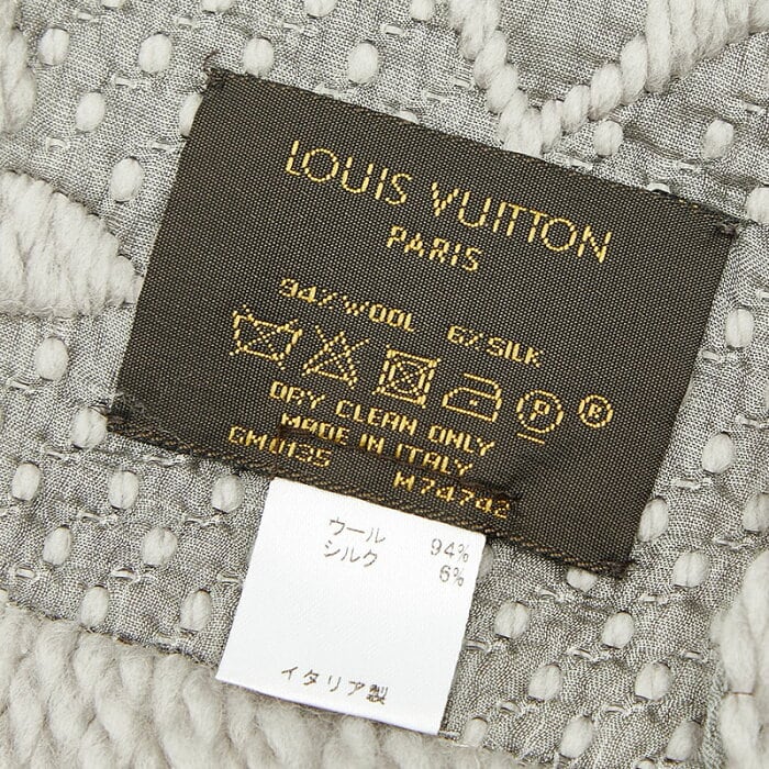 ルイ ヴィトン エシャルプ ロゴマニア マフラー M74742 グリペルル グレー ウール シルク レディース LOUIS VUITTON 【中古】