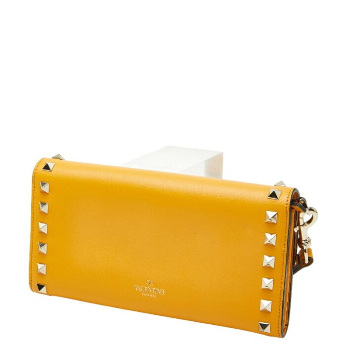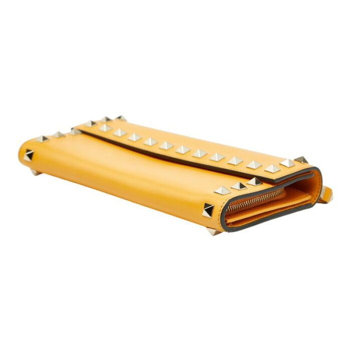 ヴァレンティノ スタッズ 長財布 イエロー レザー レディース VALENTINO 【中古】