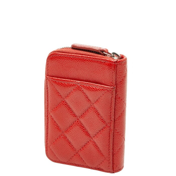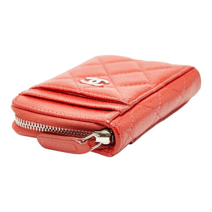 シャネル ココマーク マトラッセ カードケース コインケース AP1650 レッド キャビアスキン レディース CHANEL 【中古】