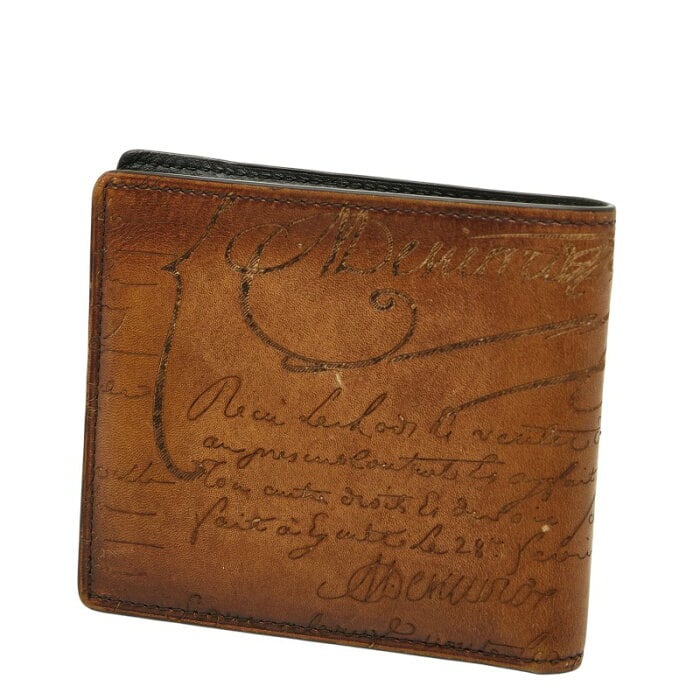 ベルルッティ カリグラフィ マコレ 二つ折り財布 札入れ カードケース ブラウン スクリットレザー メンズ Berluti 【中古】
