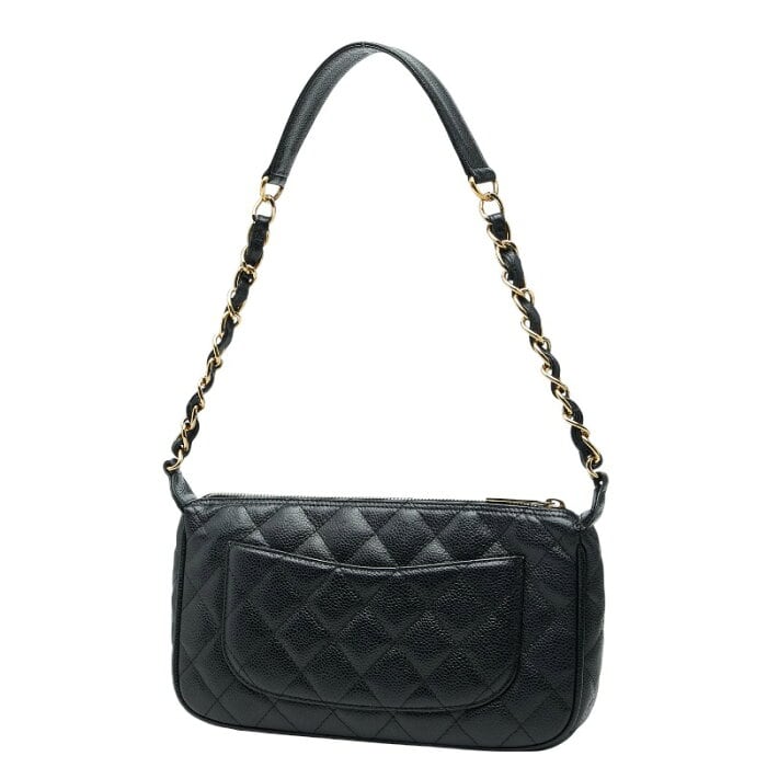 シャネル ココマーク マトラッセ チェーン ショルダーバッグ ブラック ゴールド キャビアスキン レディース CHANEL 【中古】