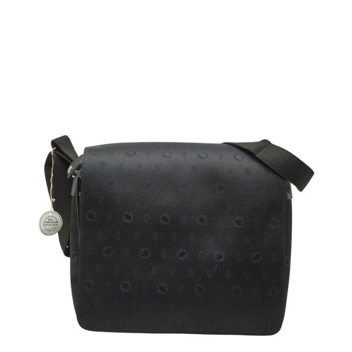ハンティングワールド 斜め掛け ショルダーバッグ ブラック キャンバス レザー レディース HUNTING WORLD 【中古】