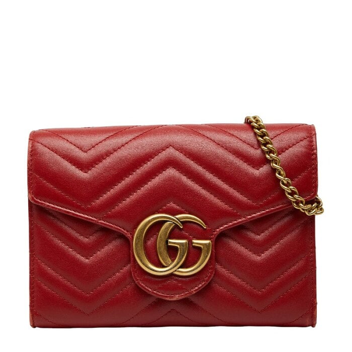 グッチ GGマーモント チェーンウォレット ショルダーバッグ 474575 レッド レザー レディース GUCCI 【中古】