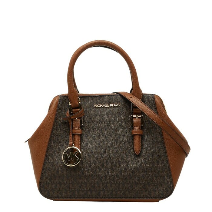 マイケルコース MKシグネチャー シャーロットMDメッセンジャー ハンドバッグ ショルダーバッグ 2WAY 35T0GCFM2B ブラウン PVC レザー レディース Michael Kors 【中古】
