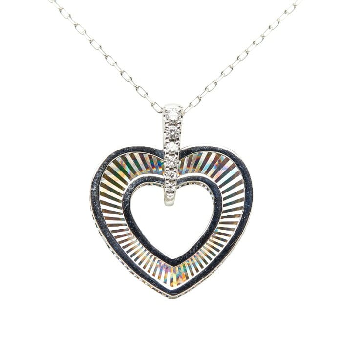 K18WG ホワイトゴールド ダイヤ0.04ct ハートモチーフ ネックレス レディース 【中古】