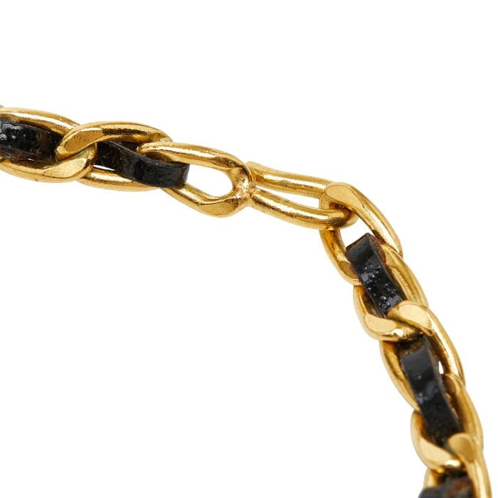 シャネル ヴィンテージ コイン リボン ネックレス ゴールド ブラック メッキ レザー ラインストーン レディース CHANEL 【中古】
