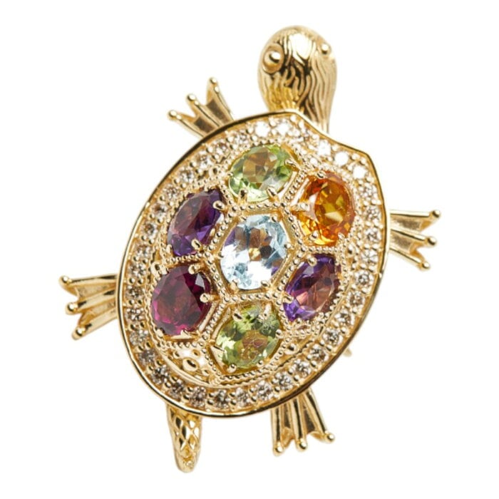 K18YG イエローゴールド マルチ色石 ダイヤ0.37ct 亀モチーフ リング 指輪 レディース 11号 【中古】