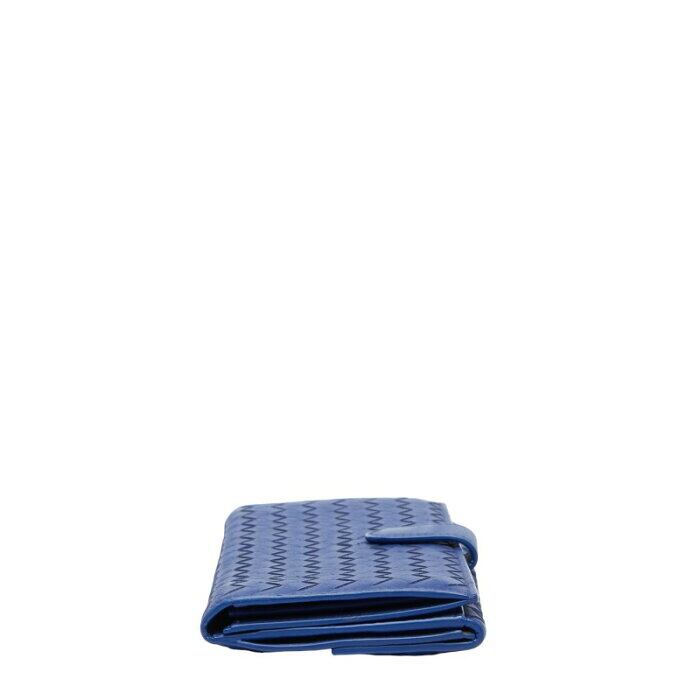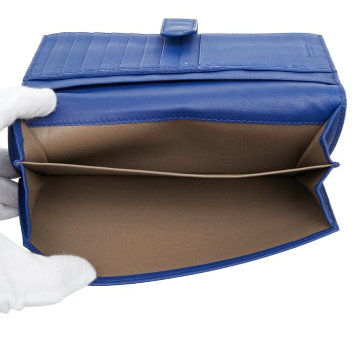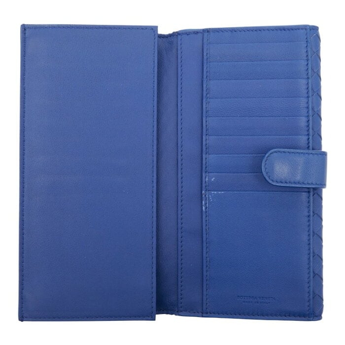 ボッテガヴェネタ イントレチャート ロングウォレット 長財布 ブルー レザー レディース BOTTEGAVENETA 【中古】