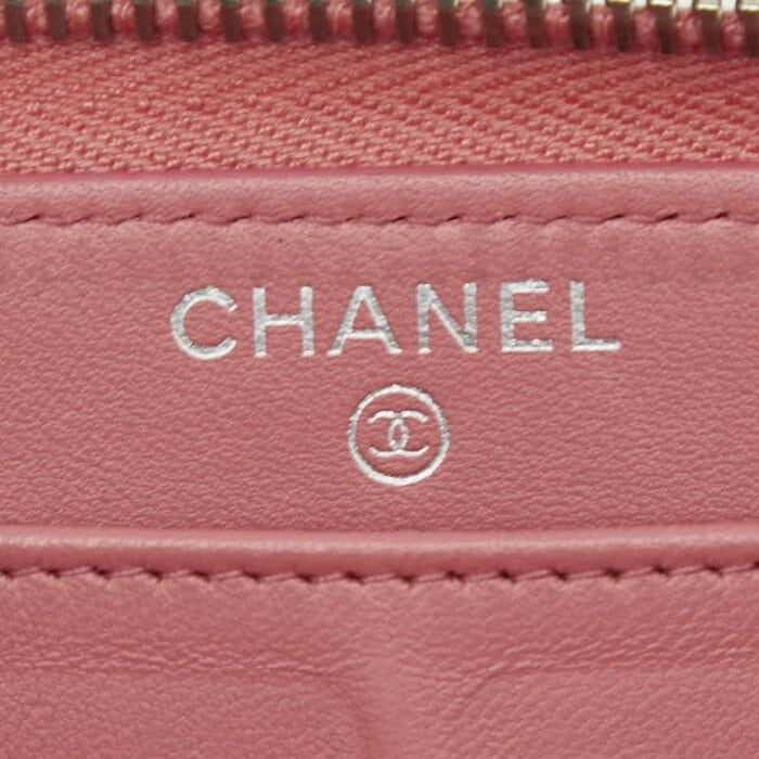 シャネル ココマーク マトラッセ ラウンドファスナー 長財布 ピンク ラムスキン レディース CHANEL 【中古】