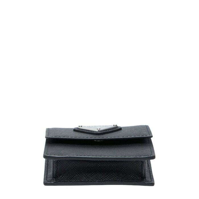プラダ 三角ロゴプレート 小物入れ ポーチ アクセサリーポーチ ブラック サフィアーノレザー レディース PRADA 【中古】