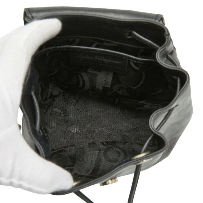 サルヴァトーレフェラガモ ガンチーニ バックパック リュック デイパック DJ-21 6258 ブラック レザー レディース Salvatore Ferragamo 【中古】