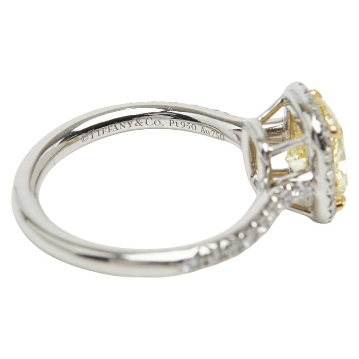 ティファニー #65824 Pt950 プラチナ K18WG ホワイトゴールド ファンシーインテンスイエローダイヤ1.54ct シングル ハロー エンゲージメント リング リング 指輪 レディース TIFFANY&Co. 9号 【中古】