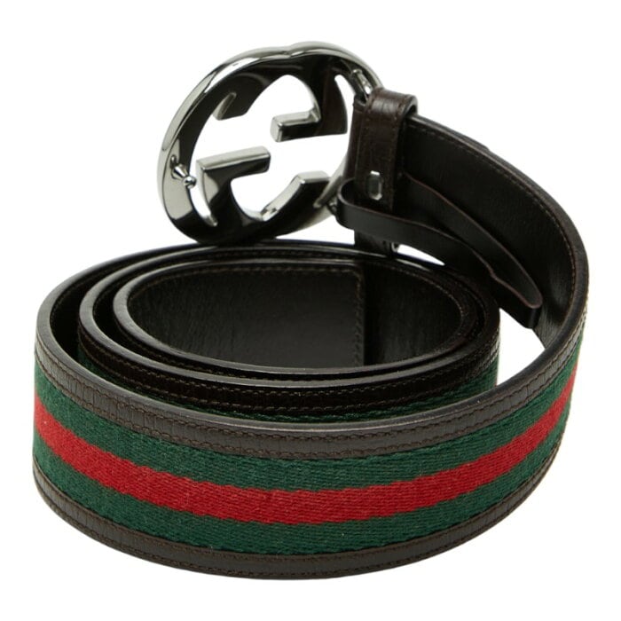 グッチ インターロッキングG シェリーライン ベルト サイズ:90/36 ブラウン マルチカラー レザー キャンバス レディース GUCCI 【中古】