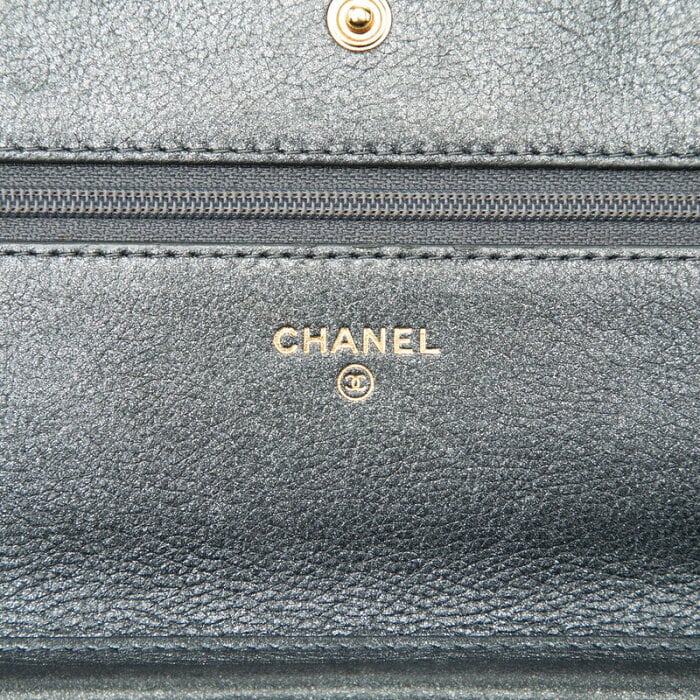 シャネル マトラッセ ボーイシャネル ココマーク チェーン ウォレット ショルダーバッグ ネイビー ゴールド レザー レディース CHANEL 【中古】