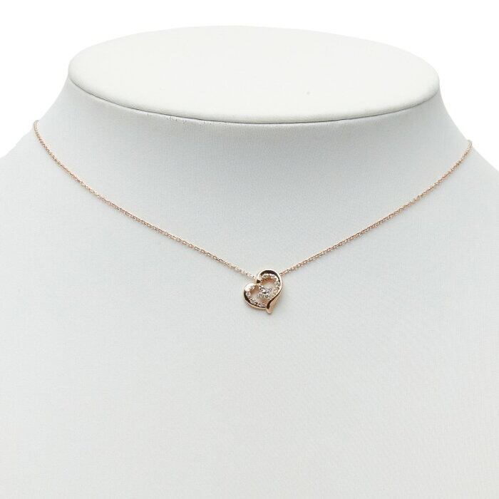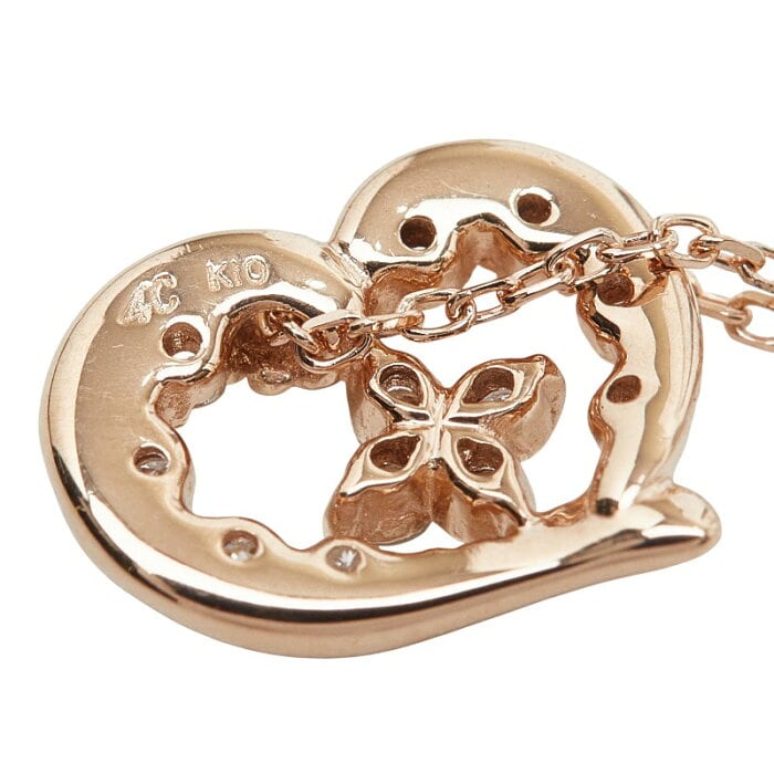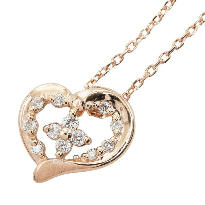 ヨンドシー K10PG ピンクゴールド ダイヤ ハートモチーフ ペンダント ネックレス レディース 4℃ 【中古】