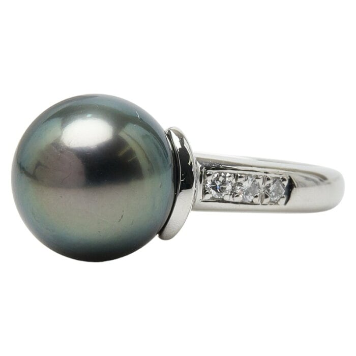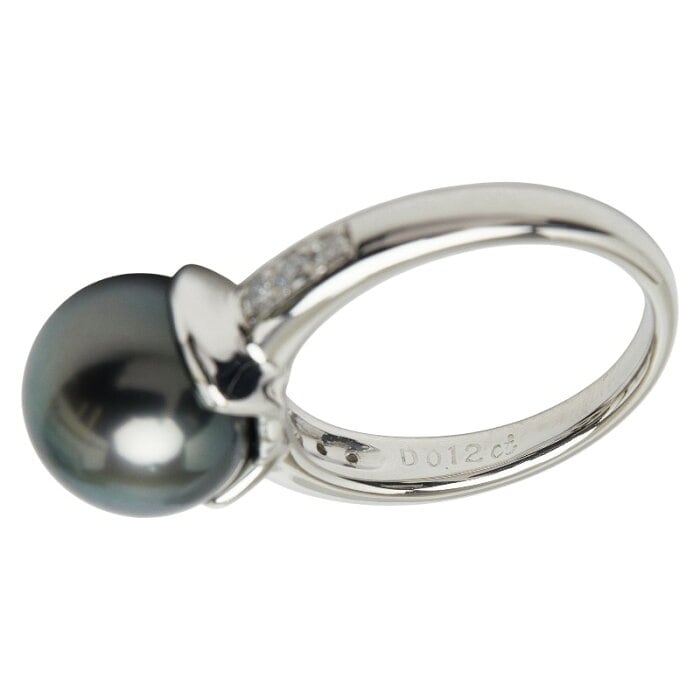 Pt900 プラチナ 黒蝶真珠10.6~10.7mm ダイヤ0.12ct リング 指輪 レディース 11.5号 【中古】