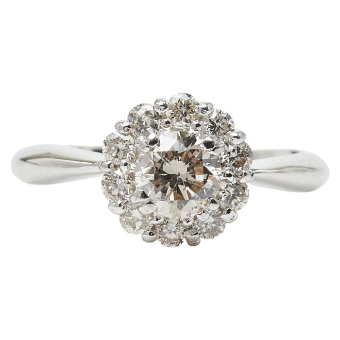 K18WG ホワイトゴールド ダイヤ0.50ct ダイヤ0.66ct フラワーモチーフ リング 指輪 レディース 12号 【中古】