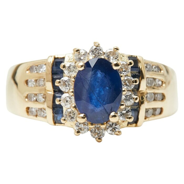 K18YG イエローゴールド サファイア1.12ct ダイヤ0.41ct サファイア0.58ct リング 指輪 レディース 15号 【中古】