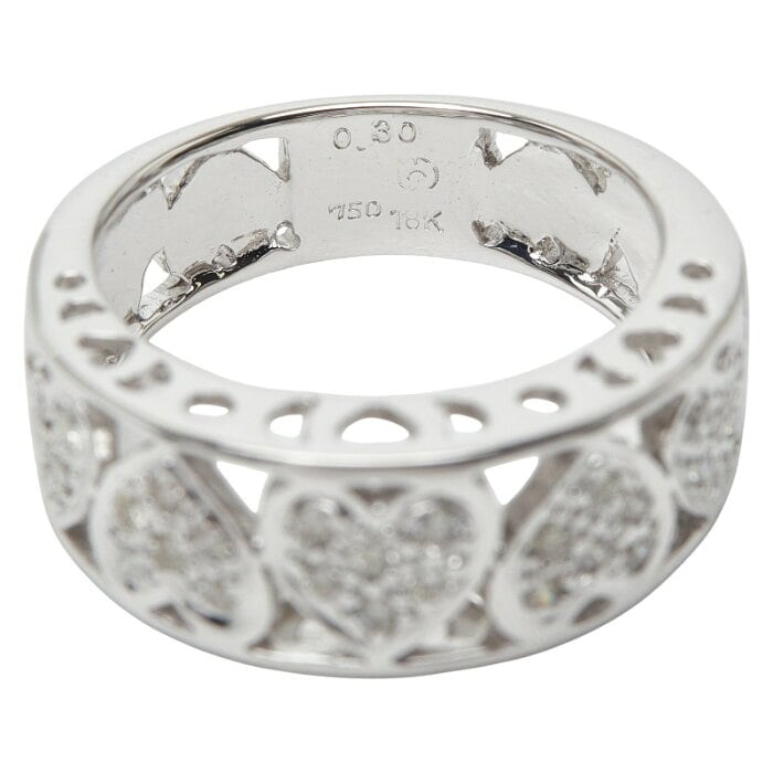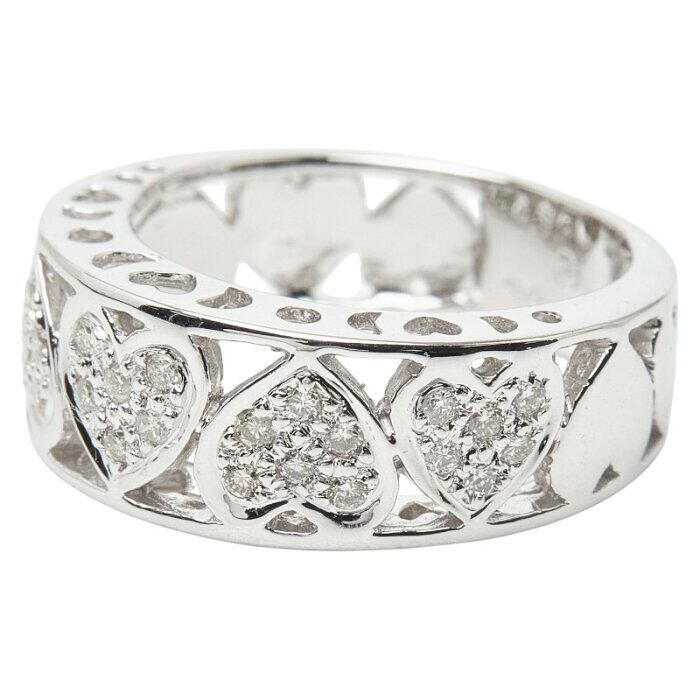 K18WG ホワイトゴールド ダイヤ0.30ct ハートモチーフ リング 指輪 レディース 13号 【中古】