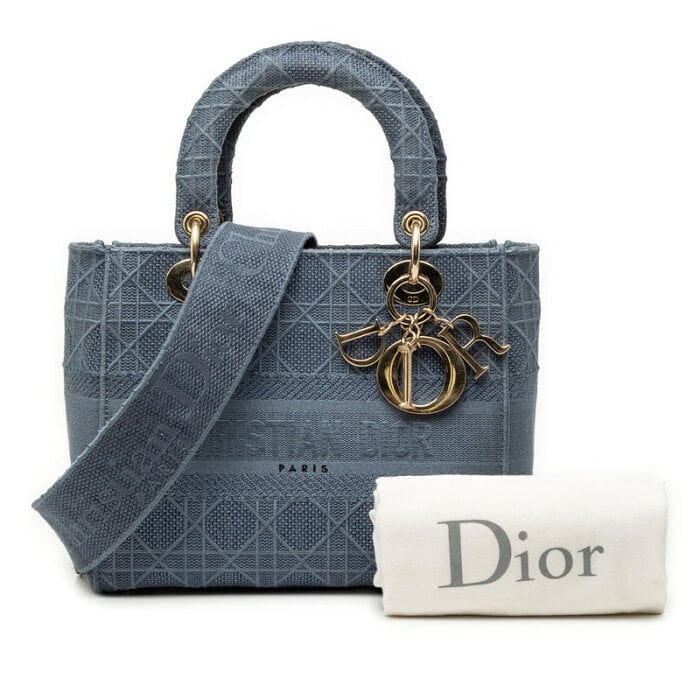 ディオール カナージュ LADY D-LITE レディディーライト ミディアム ハンドバッグ ショルダーバッグ 2WAY ブルー キャンバス レディース Dior 【中古】