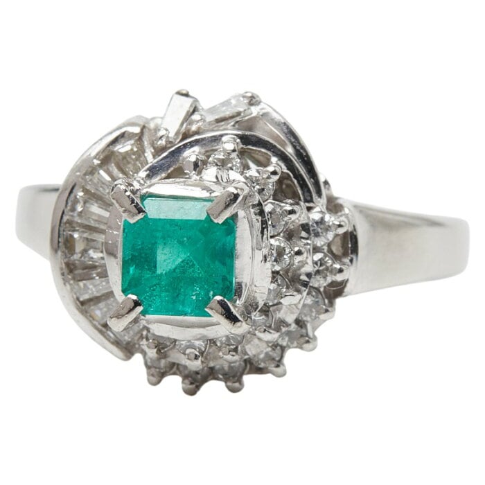 Pt900 プラチナ エメラルド0.41ct ダイヤ0.56ct リング 指輪 レディース 13号 【中古】