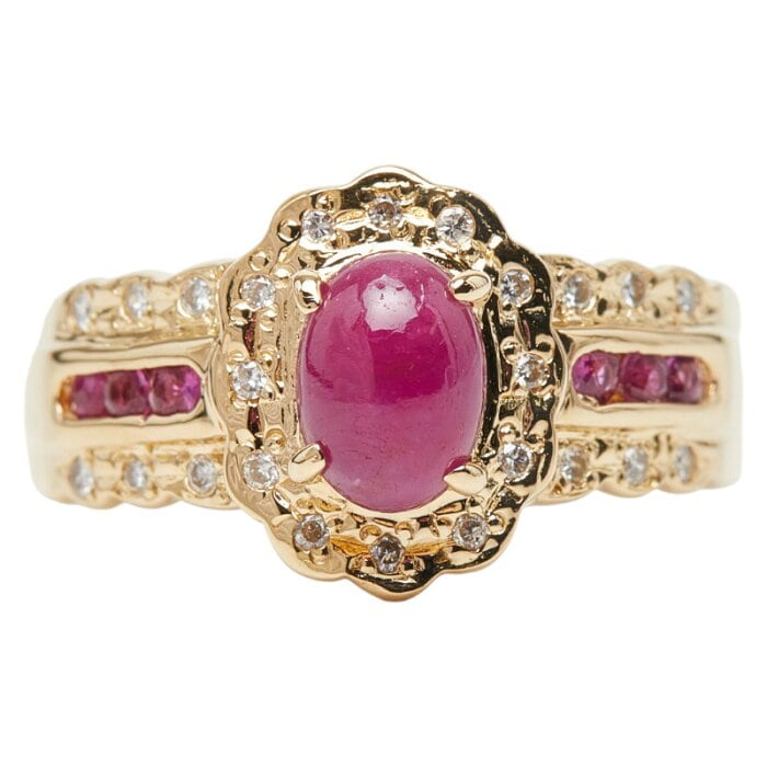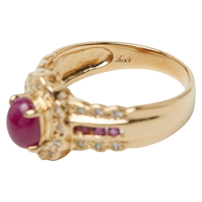 K18YG イエローゴールド ルビー1.43ct ダイヤ リング 指輪 レディース 15号 【中古】