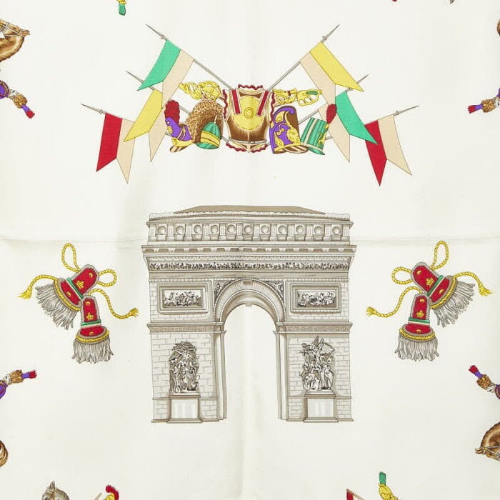 セリーヌ ヴィンテージ パリ騎馬像と凱旋門 モチーフ スカーフ ブラック ホワイト マルチカラー シルク レディース CELINE 【中古】