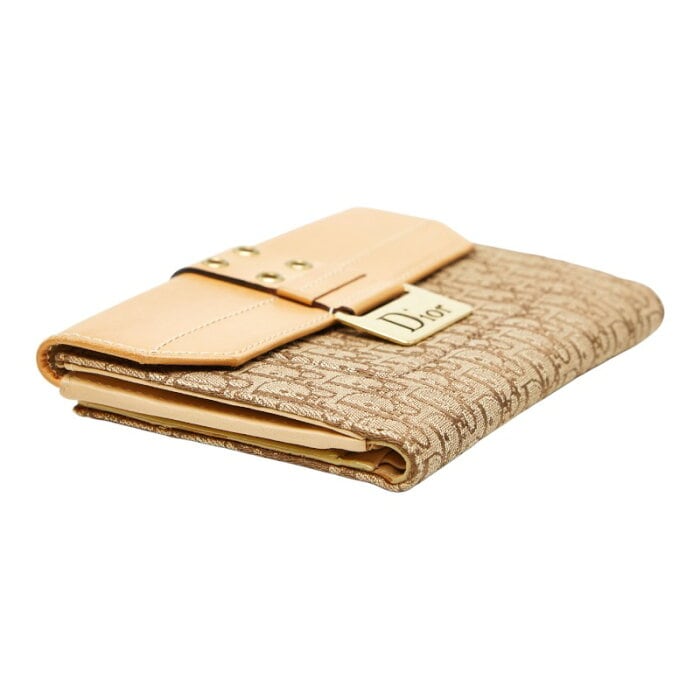 ディオール トロッター 長財布 ベージュ ブラウン キャンバス レザー レディース Dior 【中古】