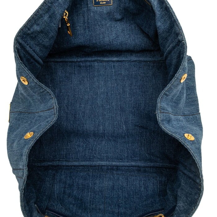 プラダ カナパ ハンドバッグ トートバッグ インディゴブルー デニム レディース PRADA 【中古】