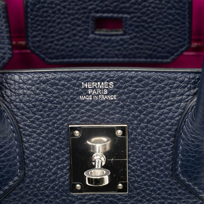 エルメス バーキン30 ハンドバッグ ブルーニュイ ローズパープル シルバー金具 トリヨンクレマンス レディース HERMES 【中古】