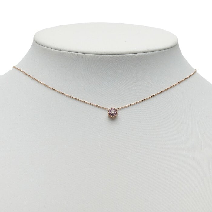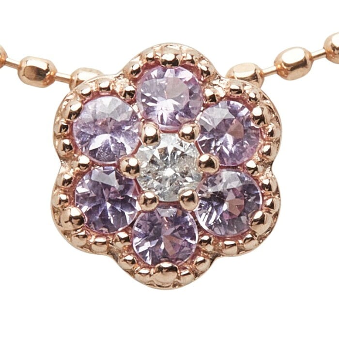 K10PG ピンクゴールド ダイヤ ピンクサファイア フラワーモチーフ ペンダント ネックレス レディース 【中古】