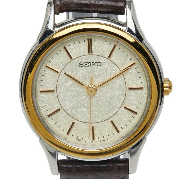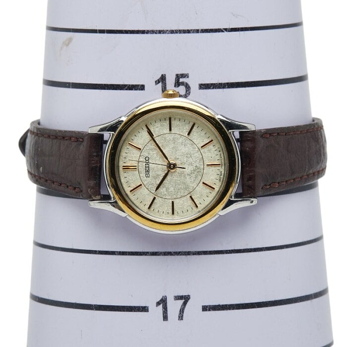 セイコー 腕時計 クオーツ ベージュ文字盤 ステンレススチール レザー レディース SEIKO 【中古】