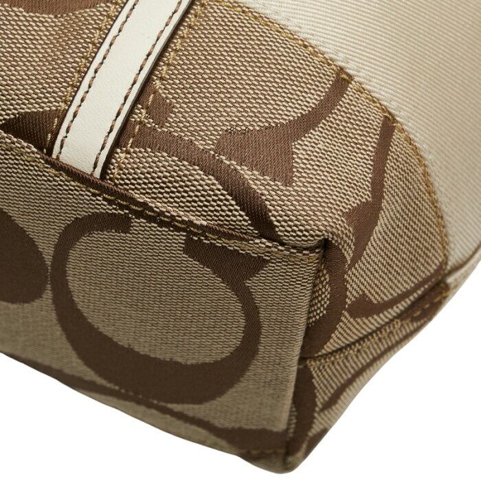 コーチ シグネチャー トートバッグ ショルダーバッグ ベージュ ブラウン キャンバス レザー レディース COACH 【中古】